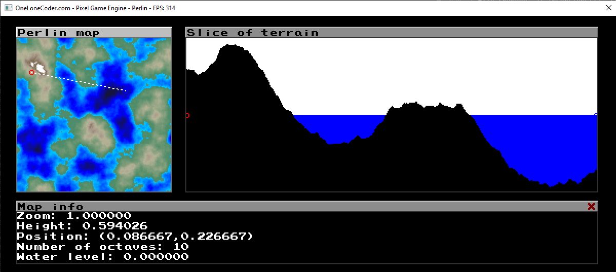 Made using the olc Pixel Game Engine by javidx9 ((https://github.com/OneLoneCoder/olcPixelGameEngine)